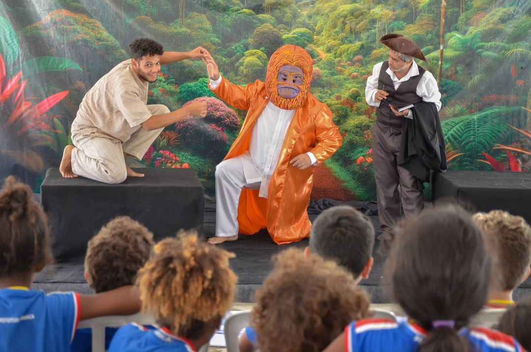 Na última segunda-feira, 8 de abril, o Teatralmente realizou duas sessões gratuitas do espetáculo “Caminhos de Darwin” na Lona Acústica e Cultural Beth Carvalho, localizada no distrito de Itaipuaçu, em Maricá – RJ. O evento foi organizado pelo Instituto Floresta Darcy Ribeiro – AmaDarcy.
