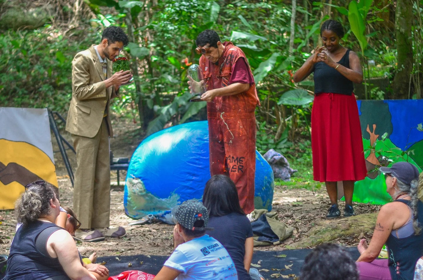No dia 30 de novembro, às 10h da manhã, o grupo Teatralmente realizou uma emocionante apresentação gratuita do espetáculo “Catador de Amanhãs” no Centro de Visitantes – Núcleo Darwin, localizado no Parque Estadual da Serra da Tiririca, em meio à exuberância da Mata Atlântica. A peça, que dá visibilidade e voz a catadores de recicláveis e pessoas em situação de rua, encontrou na natureza o cenário perfeito para sua mensagem de empatia e sustentabilidade.