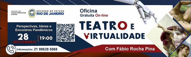Governo do Estado do Rio de Janeiro, Secretaria de Estado de Cultura e Economia Criativa do Rio de Janeiro, através do Edital Cultura Presente nas Redes 2, apresentam a oficina “Teatro e Virtualidade“, Perspectivas, Ideias e Encontros Pandêmicos, com o ator, diretor e dramaturgo Fábio Rocha Pina.