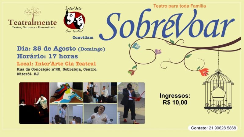 Dia 25 de Agosto, às 17 horas, o espetáculo “Sobrevoar” do Grupo Teatralmente se apresenta no Espaço Cultural Inter’Arte, no Centro de Niterói.